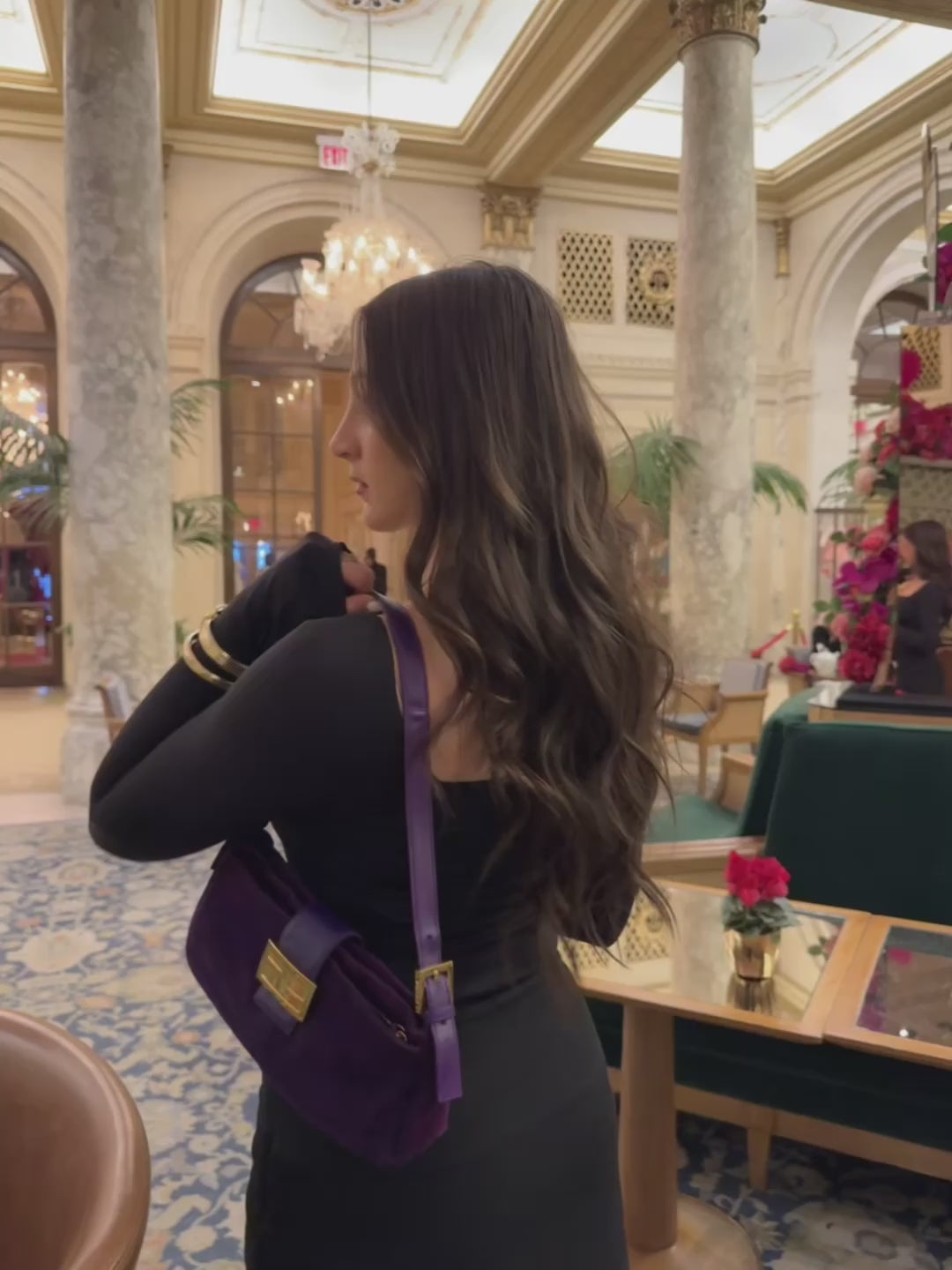 This luxurious Fendi Baguette bag in rich purple suede. Iconic FF logo hardware, compact silhouette, and adjustable strap for effortless chic. Perfect for day-to-night transitions. Gently pre-loved, excellent condition. Add this timeless piece to your collection today!